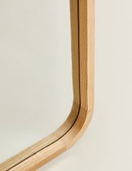 این آینه در قابی قرار گرفته است که به جای گوشه‌های تیز، لبه‌های گرد دارد. این عنصر طراحی، ظاهری متمایز از نظر بصری ایجاد می‌کند که آن را از آینه‌های استاندارد متمایز می‌کند. جنس قاب می‌تواند بسیار متنوع باشد، از چوب با رگه‌های طبیعی گرفته تا فلز براق یا حتی مواد کامپوزیتی، که امکان تطبیق سبک‌های مختلف با فضای داخلی مختلف را فراهم می‌کند.